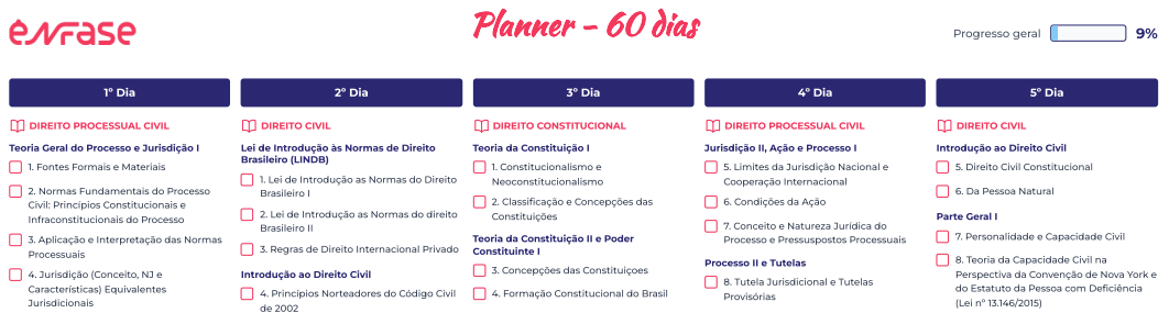 Na reta final, o foco é revisar com inteligência e manter o conteúdo fresco na memória. O Módulo 4 foi pensado para garantir uma revisão ágil, estratégica e eficaz, reunindo os temas principais de cada disciplina em formatos mais diretos e objetivos.